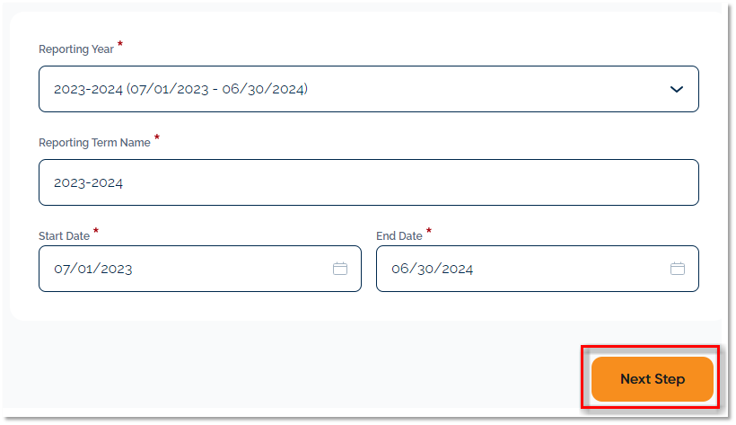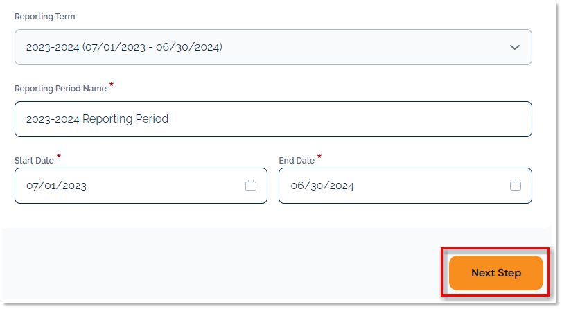 Click Save Reporting Year. You will be returned to the Data Collection Periods screen, where your new Reporting Year will appear.