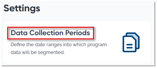 The Reporting Period data collection period is only used in the rare circumstance that an organization needs to create specific data reporting periods that are more specific than a Reporting Term.