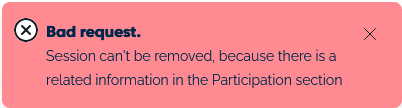 If participation was recorded for this session, you will receive an error message; such sessions cannot be deleted.